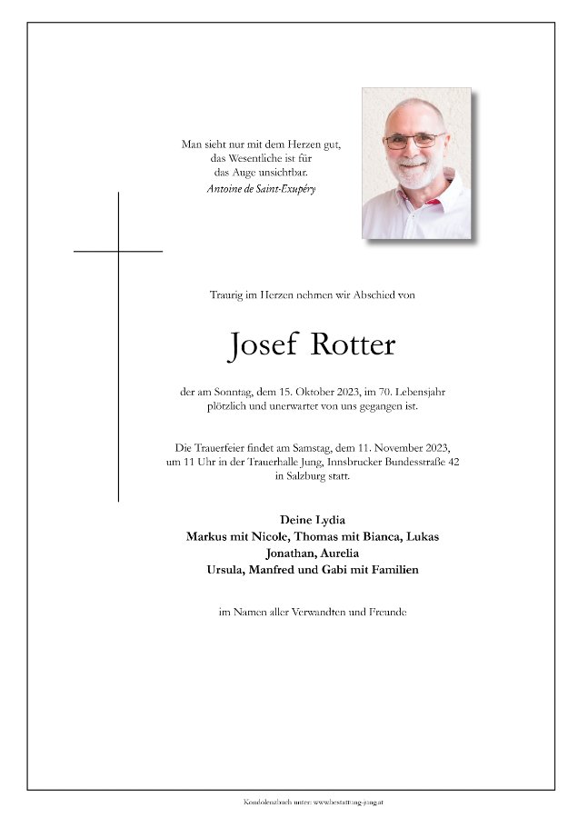 Liebe Lydia! Obwohl wir uns nicht sehr gut kennen, ist es mir als Patin von Wolfgang und Martin ein Bedürfnis, Dir und Deinen Söhnen mein aufrichtiges Beileid zu übermitteln. Ich habe euch noch von Martins Sponsion in lieber Erinnerung und bin vom plötzlichen Ableben von Jupp tief berührt. Ich wünsche euch viel Kraft für diese schwere Zeit! Liebe Grüße aus Innsbruck, Klara