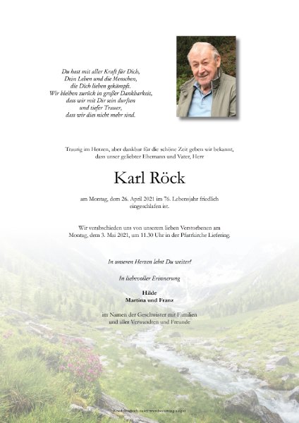 Wir werden Karl in unseren Herzen in Erinnerung behalten und blicken mit einem lächelnden und einem weinenden Auge auf gemeinsame Momente zurück. Ruhe in Frieden, lieber Karl!