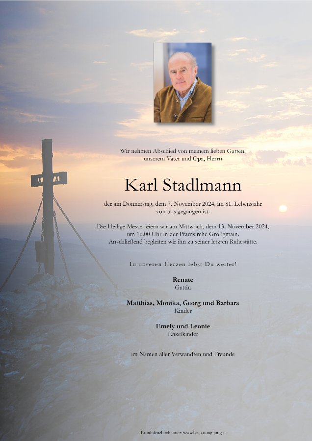 Liebe Fam. Stadlmann, liebe Barbara Ein Verlust, den Worte nicht heilen und zum Ausdruck bringen können, alleine die Zeit & der Zusammenhalt bzw. die Erinnerung an die schönen gemeinsam erlebten Momente dienen als Linderung. Viel Kraft & Stärke