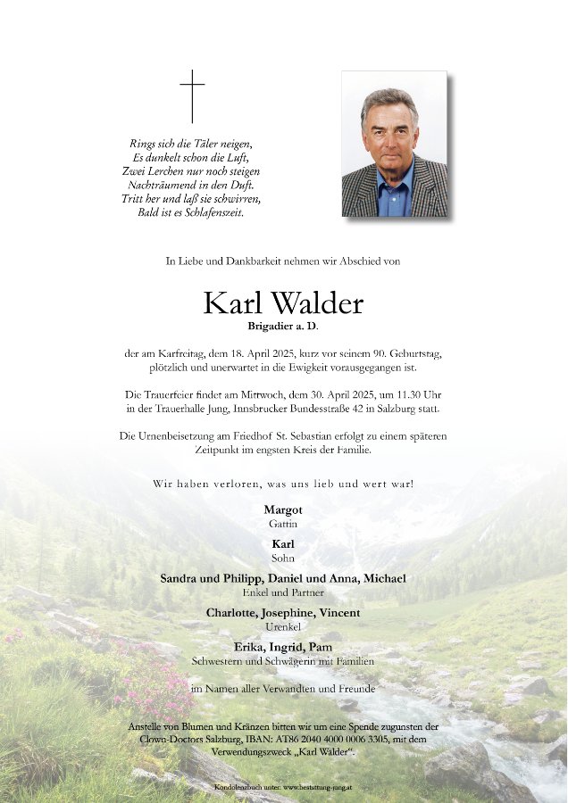 Lieber Karl, Liebe Frau Walder, liebe Trauerfamilie
