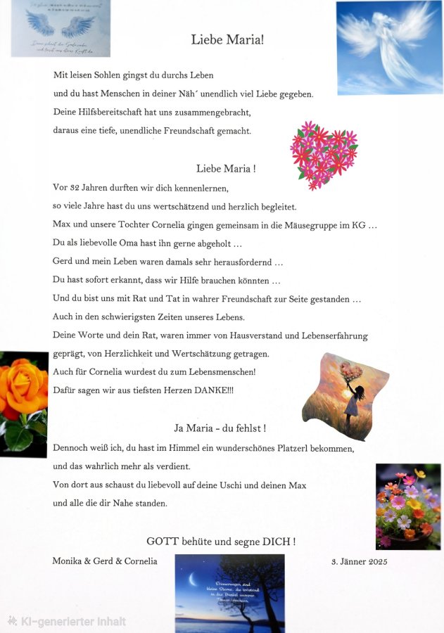 Wer im Herzen seiner Lieben lebt, ist nicht tot, er ist nur fern. Liebe Uschi, lieber Max, wir sind in Gedanken bei euch