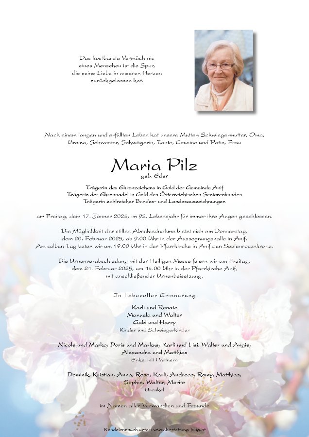 geboren am 1. Juni 1933 in Teisendorf gestorben am 17. Januar 2025 in Anif