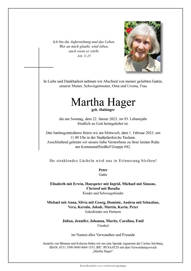 Wir werden Martha in liebevoller Erinnerung behalten.