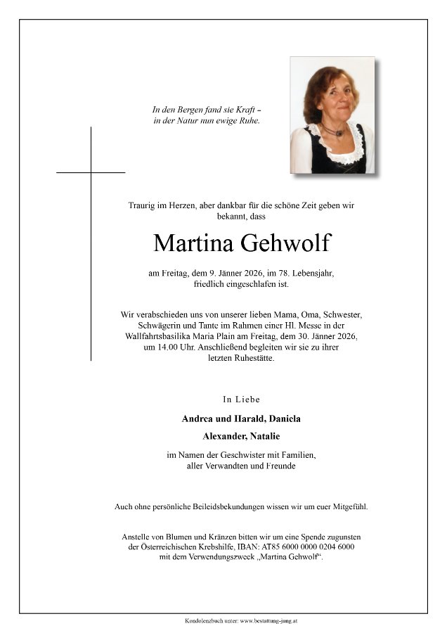 geboren am 29. März 1948 in Großarl gestorben am 9. Januar 2026 in Hallein