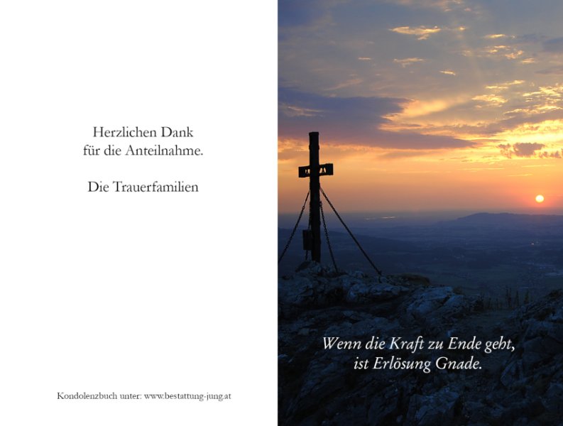 Die Möglichkeit der Abschiednahme bietet sich bei der Aufbahrung am Samstag, den 30. Jänner und am Sonntag, den 31. Jänner am Friedhof Siezenheim.