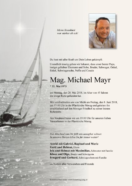 ich habe sehr oft an dich gedacht, an Astrid, an die Kinder, deine Eltern und Geschwister mit dem Empfinden, wie schmerzlich der Verlust eines geliebten Menschen ist und sein wird. Wenn es wahr ist, dass man jenseits des irdischen Lebens erwartet wird, dann wirst du nun sicher mit Gerhard ein Stück des Weges gehen. Wo immer ihr auch seid, es soll euch gut gehen!
