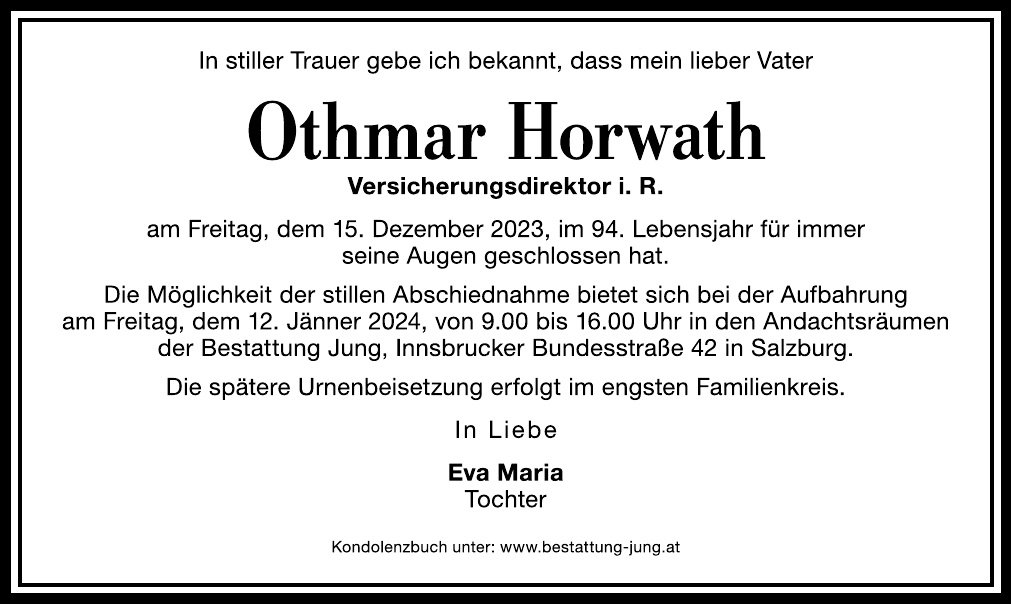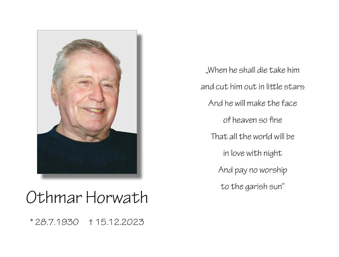 Heute erst habe ich zufällig (ich wohne in Vorarlberg) vom Tod von Othmar, Ihrem Vater erfahren. Ich bin bestürzt und aufgewühlt.