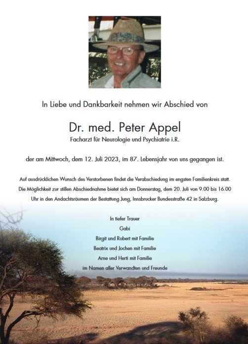 Liebe Gabi! Wir wollen Dir unsere herzliche Anteilnahme zum Ableben von Peter aussprechen. Wir sind Peter für die liebevolle Betreuung unserer Eltern sehr dankbar. Möge er in Frieden ruhen. Alles Liebe Elisabeth und Gusti
