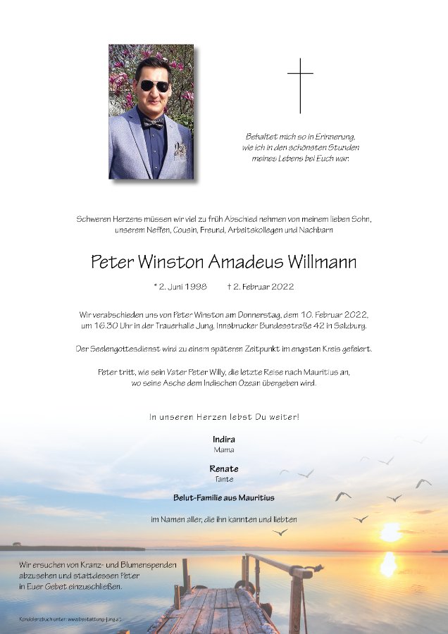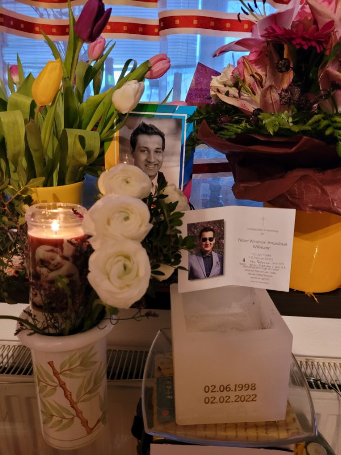 Schon wieder einen Tag voller Errinerung ,heute vor 3 Jahre 10.02. 2022 haben wir -- deine Freunde Nachbarn , kollege , l,ehrer, Bekannten Verwante und ich deine Mama die dich so vermisste ,--- bei der Bestattung Jung veranschien haben.