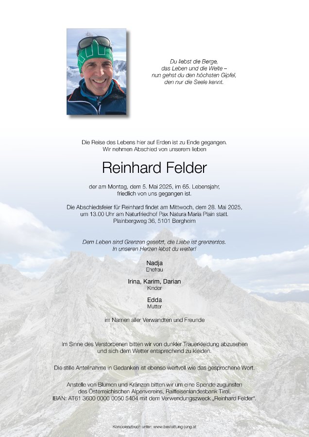 Mein aufrichtiges Beileid zum Abschied von eurem lieben Reinhard. Es tut mir sehr leid, dass ihr diese leidvollen Erfahrungen jetzt schon machen müsst.
