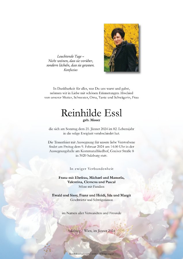 geboren am 24. Juni 1942 in Krakauhintermühlen gestorben am 21. Januar 2024 in Hallein