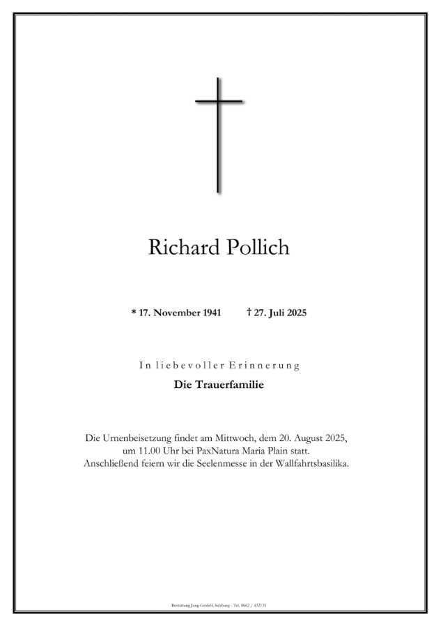 Liebe Renate unser tiefes Mitgefühl wollen wir traugott und.Christine auf den plötzlichen tod von Richard zum Ausdruck bringen. Herzliche Beileidsgrüsse Traugott und.Christine.