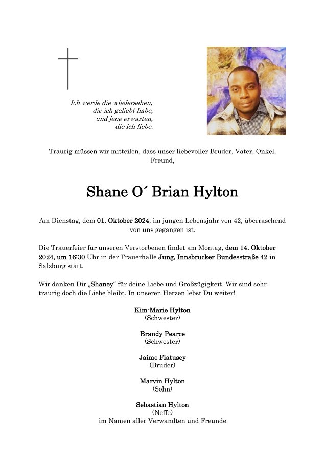 In großer Bestürzung und sehr überraschend verlieren wir einen loyalen, verlässlichen, sympathischen und guten Mitarbeiter! Wir wünsche den Angehörigen viel Kraft und Zuversicht! In Trauer, Ruhe in Frieden! Thomas REISENBICHLER und Job Team