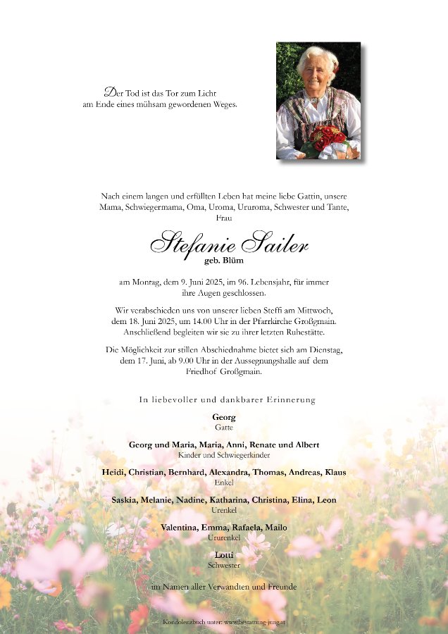 geboren am 23. Dezember 1929 in Ebene Reichenau gestorben am 9. Juni 2025 in Großgmain