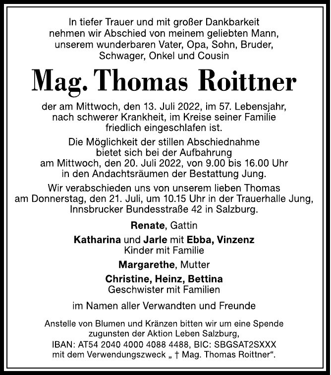 Liebe Renate, wir wünschen dir und deiner Familie viel Kraft in dieser schweren Zeit!