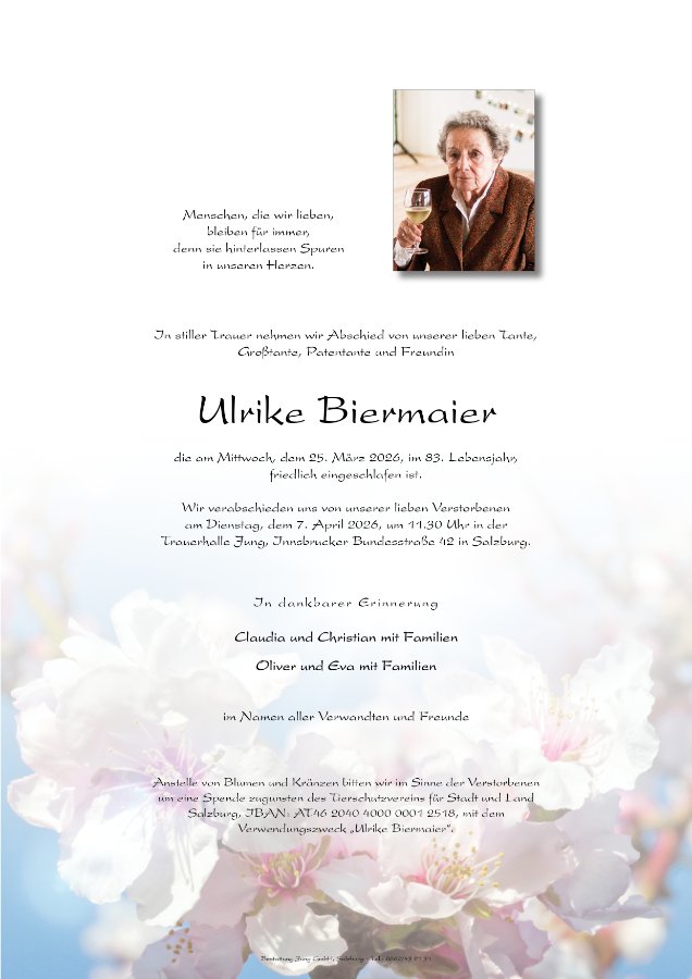 geboren am 14. Februar 1944 in Eugendorf gestorben am 25. März 2026 in Salzburg
