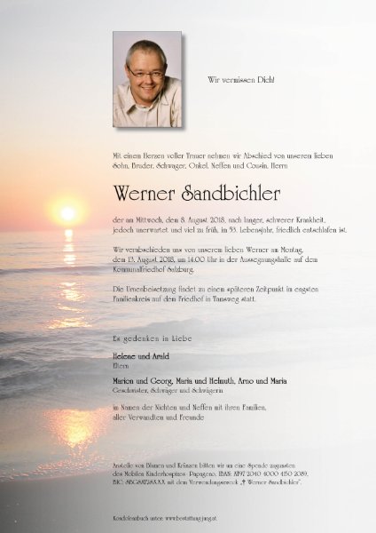 mein aufrichtiges Beileid und inniges Mitgefühl zum plötzlichen Verlust eures geliebten Werners,