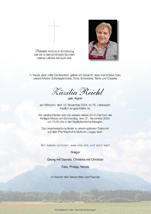A Liachtl für di, liebe Zilli und ruhe in Frieden.Cousine Waltraud aus dem Lungau.